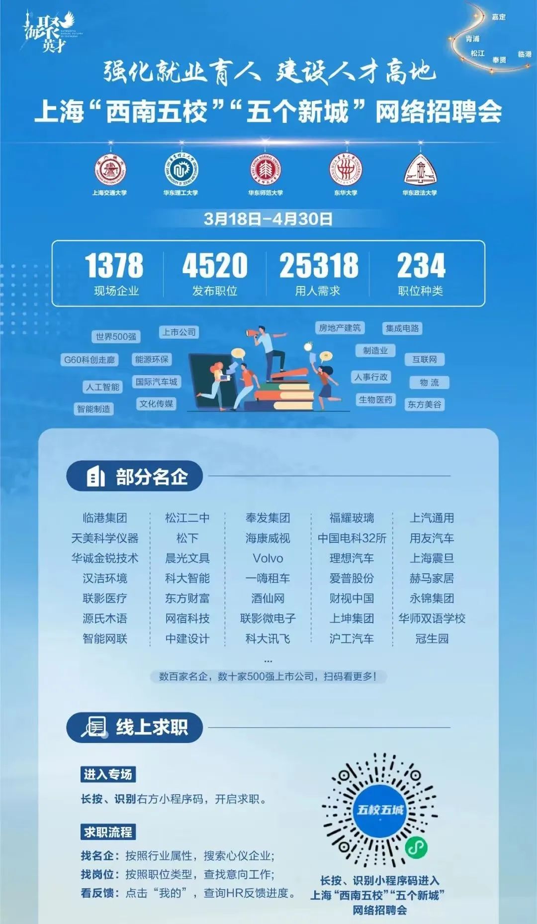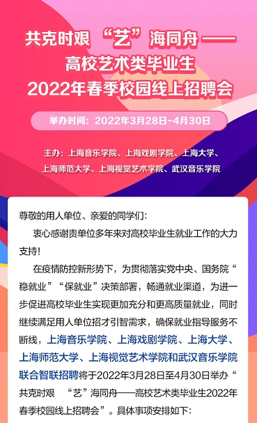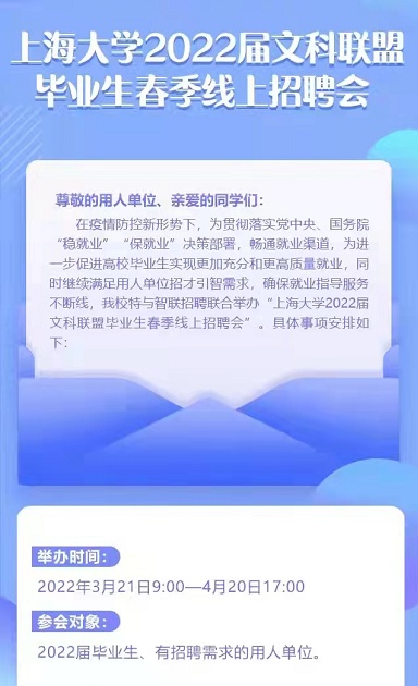 突如其来的疫情为上海今年的就业形势带来了巨大的挑战,如何帮助大学生更快、更充分就业? 沪上高校多措并举,确保就业服务不断线,暖心陪伴不停歇。 同济大学 云上技能培训不打烊 云上生涯学习不停歇,求职技能培训不打烊。自疫情发生以来,为了最大限度降低疫情对毕业生就业、求职和签约的影响,同济大学学生就业指导中心积极转变工作模式,吸纳整合校内外资源,持续开展各项线上生涯辅导和求职技能提升培训,“求职技能提升训练营”和“职业素养提升训练营”率先开展,参与学生已累计近1000人次。 “求职技能提升训练营”作为同济大学“行·泽·济”生涯大讲堂的经典项目,旨在提升学生的求职“硬技能”,帮助学生提高“简历制作”“面试应对”“职场礼仪”等求职技能。在校园封闭管理期间,为助力同学们“足不出户”实现求职技能的提升,同济大学拓展了单面模拟训练、群面模拟训练和“简历门诊”三大王牌活动。其中,单面模拟训练首次加入到求职技能提升训练营中,以线上一对一的方式开展,针对单面中最常见的三类问题进行提问-回答的模拟训练,指导老师对回答情况一一讲解分析。 “简历门诊”活动首次从线下转为线上,由指导老师一对一线上修改简历,对学生简历中存在的求职意向不明确、格式混乱、重点不突出等问题进行“诊断”,并结合学生的求职目标、兴趣爱好等因素提供指导和修改意见。来自知名企业、高校和杨浦区人社局的20余位专业老师,参与指导了近200名学生。 此外,为帮助同学们在校园封闭管理期间实现自我提升,同济大学精选了本期“单面模拟训练”活动录制视频的部分内容,整理并制作成线上课程,现已在“智慧树”平台上线。 同济大学还推出了“职业素养提升训练营”之“博士就业大讲堂”,助力博士生明确自身定位,尽早启动职业生涯规划。目前已开展两期活动,累计参与学生近500人。作为训练营的进阶版课程,“名企高管话生涯”系列讲座积极引导同学们直接对话用人单位高管,对接企业发展信息,掌握企业选人用人规则。 博士就业大讲堂 华东理工大学 助力毕业生就职“五个新城” 华东理工大学过程装备与控制工程专业的闫家栋同学在考研结束后,参加了学校组织的上海“西南五校”“五个新城”网络招聘会,不少新城知名企业向他抛出了橄榄枝,“把握当前机遇,到实践中成长”,闫家栋最终决定签约上海电气集团。吸引他的不仅是新城的人才政策,更是这家沪上老牌名企在新时代转型升级中蕴藏的巨大潜能。 前往新城找工作,开启人生新篇章。在华东理工大学,相较往年,线上咨询、办理面向“五个新城”就业的毕业生也多了起来。“新城的发展空间更大”“人才政策好,就业能落户”“产业更集聚,专业更对口”“新城房价更低”……毕业生选择新城的原因不尽相同,但“五个新城”对这一届毕业生的吸引力无疑提升了不少。 当前,疫情对高校毕业生就业工作带来挑战。在这“金三银四”的求职季,华东理工大学学生就业指导中心第一时间启动“云就业”模式,不间断地提供“云招聘”“云指导”“云服务”,千方百计减轻疫情对毕业生求职的影响。后续,华东理工大学还将继续围绕“就业育人”主题开展系列联动工作,帮助大学生了解重点区域,走进重点产业,千方百计保障毕业生实现更高质量就业。 东华大学 党员牵线做好“线上双选会” 作为战斗堡垒的党组织为特殊时期的学生工作提供了有力保障。作为东华大学服装与艺术设计学院学生就业创业工作负责人,一宿临时党支部书记杨柳在认真做好疫情防控工作的同时,把党员同学组织起来,共同做好“线上双选会”、与用人单位线上接洽、为考研复试保驾护航等工作。 上海大学 助你与“令人心动的offer”双向奔赴! 面对复杂严峻的就业形势,上海大学在做好疫情防控工作的同时,聚焦“精准”“快速”“暖心”三个关键词,多措并举,全力为毕业生就业保驾护航。 疫情防控期间,学校进一步统筹多方资源,精心组织线上招聘活动。结合学科专业特点,学校除了组织综合类招聘会外,还特别组织了文科类、经管类专场,又联合上海音乐学院、上海戏剧学院等艺术类高校开展艺术类毕业生线上招聘会,满足不同学科专业毕业生需求。结合就业地域特点,针对临港、漕河泾、陆家嘴等上海重点区域开展专场招聘;汇聚苏州、杭州、宁波、郑州等非上海地区开展线上招聘,还特别汇集新疆、西藏地区的岗位需求,为毕业生边疆就业畅通信息渠道。结合学生需求特点,利用就业信息网,根据毕业生填报的“求职意向”,通过短信定点推送相关就业信息,目前已向2022届毕业生推送6.6万条。学校与用人单位积极沟通,专门设立简历直推绿色通道,就业指导老师一一查看过毕业生简历后,统一与用人单位对接推荐,3月份以来已经累计向十余家企业推荐毕业生290人次。 在校园准封闭管理期间,上海大学立即跟进各项就业服务,各部门各单位快速响应毕业生需求。第一时间发布《关于校园准封闭管理期间毕业生就业事务办理的提示》,针对毕业生就业事务咨询、就业推荐表盖章、协议书鉴证、报到证办理等事务进行梳理说明,并形成详细的“你问我答”清单,帮助毕业生了解各项就业事务办理方式。学校启动专用邮箱,通过线上渠道帮助毕业生打印、盖章并邮